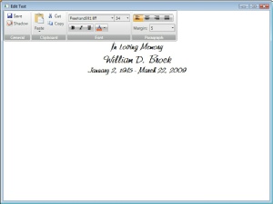 When that is done, double click on the text box. Erase the poem that is in it and paste the obituary into the text screen.