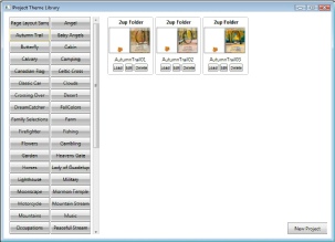You will notice three buttons at the bottom of each theme. You will see Load, Edit and Delete. The Load button will load the selected theme for your project. The Edit button will let you make changes to the actual theme for future use. For example if you wanted to change the font size and style for your themes to use you could do an edit, make the changes and any future use of the theme would use your changes. The Delete button would simply remove the theme from your library.