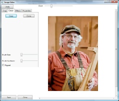 The screen will than change showing you the eraser controls. Click on the Eraser button. Then you can control the size of the edit brush and the edge feathering with the Brush Size and Brush Hardness slider controls. You can also Zoom up the image to allow for tight areas that will need to be erased. After you have the brush size and hardness set simply start erasing the background by holding down your left mouse button and erasing the items you would like to erase. If you erase to much or make a mistake you have an Undo button to rely on. Once you have finished erasing the background select the Save Button.