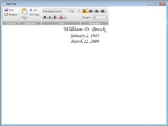 When that is done, double click on the text box. Erase the poem that is in it and paste the obituary into the text screen.