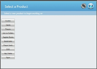 This screen is used to select a product that you would like to create. Since we will be creating a Bookmark select the Bookmarks button.