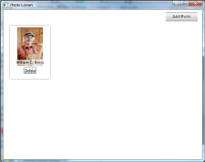 You should see the photos you uploaded during the data entry screens. If not or if you need additional photos you can select the Add Photo button and add more photos. If the photo is there you want to use simply place your mouse point on top of the photo and hold your left mouse button down. Then drag the photo and place it onto your project. You can bring more then one photo into your project if you would like. When completed close the My Photos Library screen.
