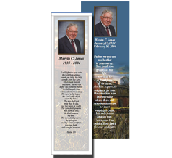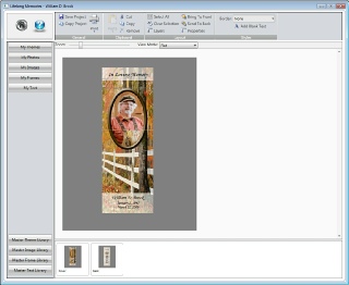 This is the main project creation screen for the 3 x 9 Bookmark. You will notice that Lifelong Publisher will automatically place the project information into the project. This information was used from your data entry screen. With Lifelong Publisher you have the ability to make any changes that you would like with your project. Each element can be sized, move or rotated or even deleted. To edit any text items contained within your project you can simply place your mouse pointer on top of the text and double click your left mouse button. For this tutorial double click on the name information.