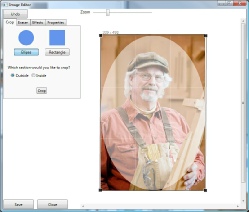 Lifelong Publisher provides many tools to edit your photos. One of these tools is a cropping tool. To crop your photo into an oval shape select the Ellipse button located on this screen.