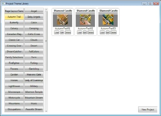 This screen provides several project options for the Diamond Candle. Each option is explained If you click on the screen to the right.