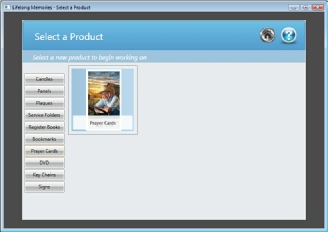This screen is used to select a product that you would like to create. Since we will be creating Prayer Cards select the Prayer Cards button.