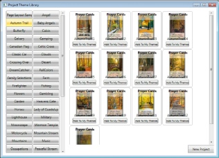 This screen will show all the themes that available to use for your prayer cards. The buttons will list all the categories available. Simply select a category that you are interested in. For this tutorial we have selected the Autumn Trail Category button.