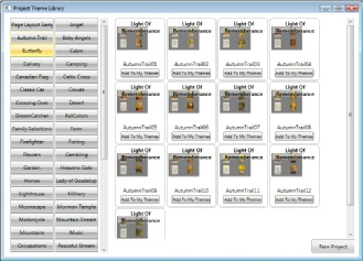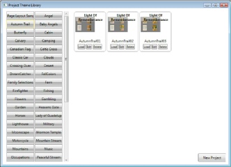 You will notice three buttons at the bottom of each theme. You will see Load, Edit and Delete. The Load button will load the selected theme for your project. The Edit button will let you make changes to the actual theme for future use. For example if you wanted to change the font size and style for your themes to use you could do an edit, make the changes and any future use of the theme would use your changes. The Delete button would simply remove the theme from your library.