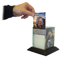 The next step with the creation of your Square Series or Large Remembrance Candle is to add a photo of the deceased. You have several options to accomplish this. First, your theme will already include a color matched frame for the deceased. If this frame is acceptable all you will need to do is place the photo into the supplied frame. Otherwise you can select a different frame to use or not use a frame at all. For this tutorial we will show you how to accomplish several approaches.