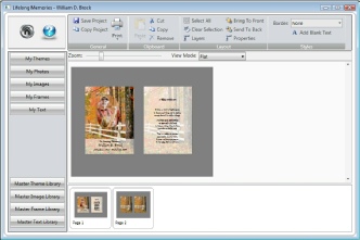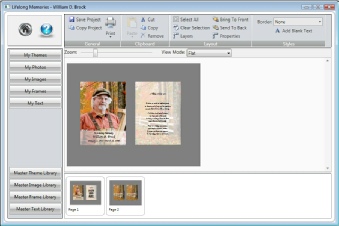 You should see the photos you uploaded during the data entry screens. If not or if you need additional photos you can select the Add Photo button and add more photos. If the photo is there you want to use simply place your mouse point on top of the photo and hold your left mouse button down. Then drag the photo and place it onto your project. You can bring more then one photo into your project if you would like. When completed close the My Photos Library screen.
