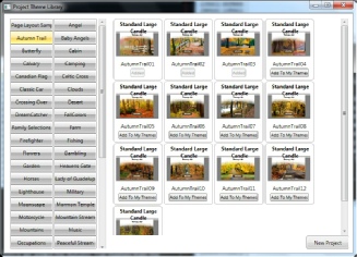 This screen will show all the themes that available to use for your Standard Large candle. The buttons will list all the categories available. Simply select a category that you are interested in. For this tutorial we have selected the Autumn Trail Category button.