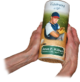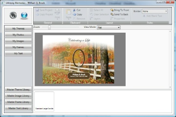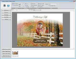 This is the main project creation screen for the Standard Large candle. You will notice that Lifelong Publisher will automatically place name and date information into the project. This information was used from your data entry screen. With Lifelong Publisher you have the ability to make any changes that you would like with your project. Each element can be sized, move or rotated or even deleted. To edit any text items contained within your project you can simply place your mouse pointer on top of the text and double click your left mouse button. For this tutorial double click on the name information.